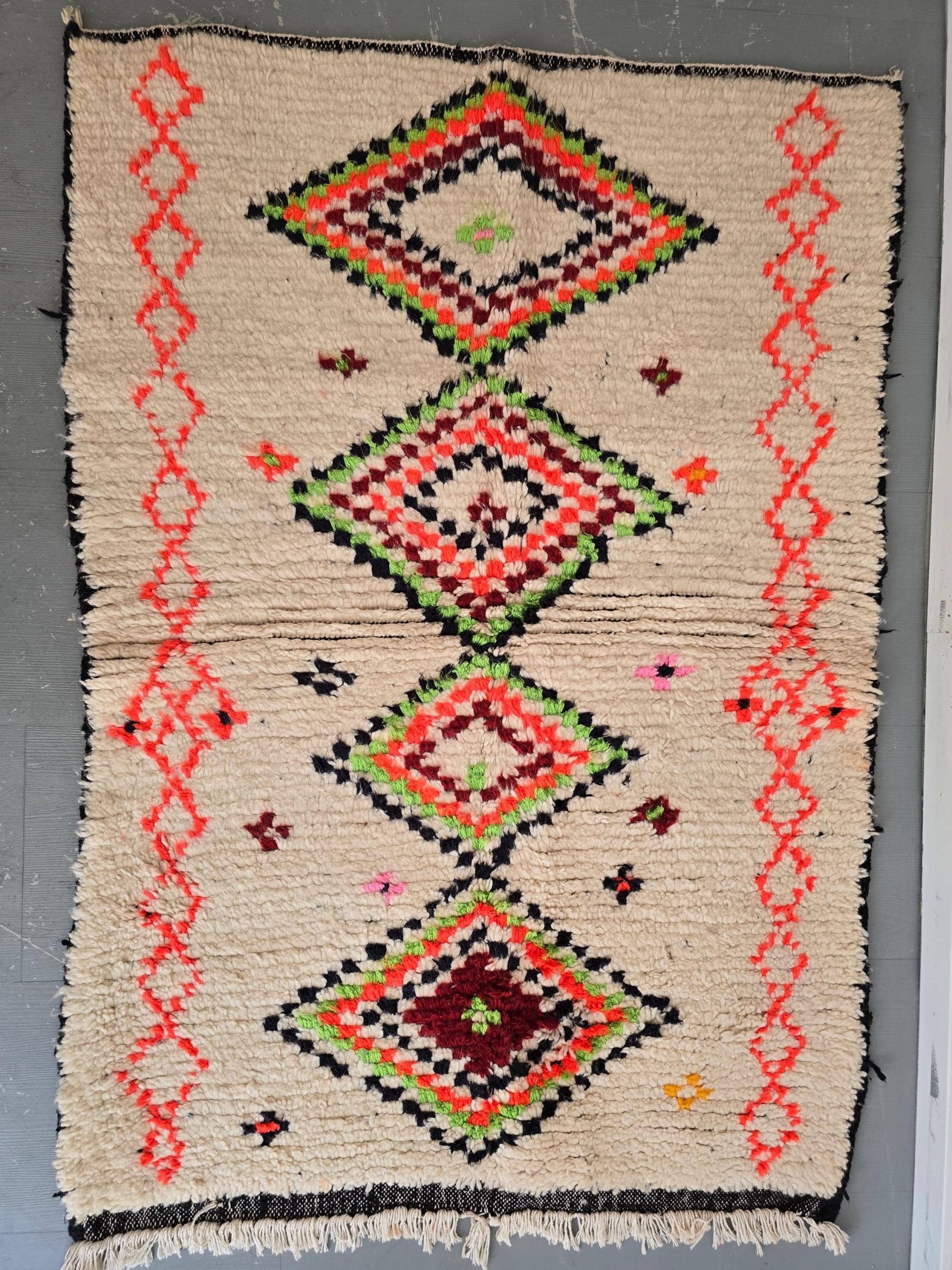 Berber Teppich Radia | Handgewebtes Statement | 150×100 cm | Weiß mit Neon-Orange