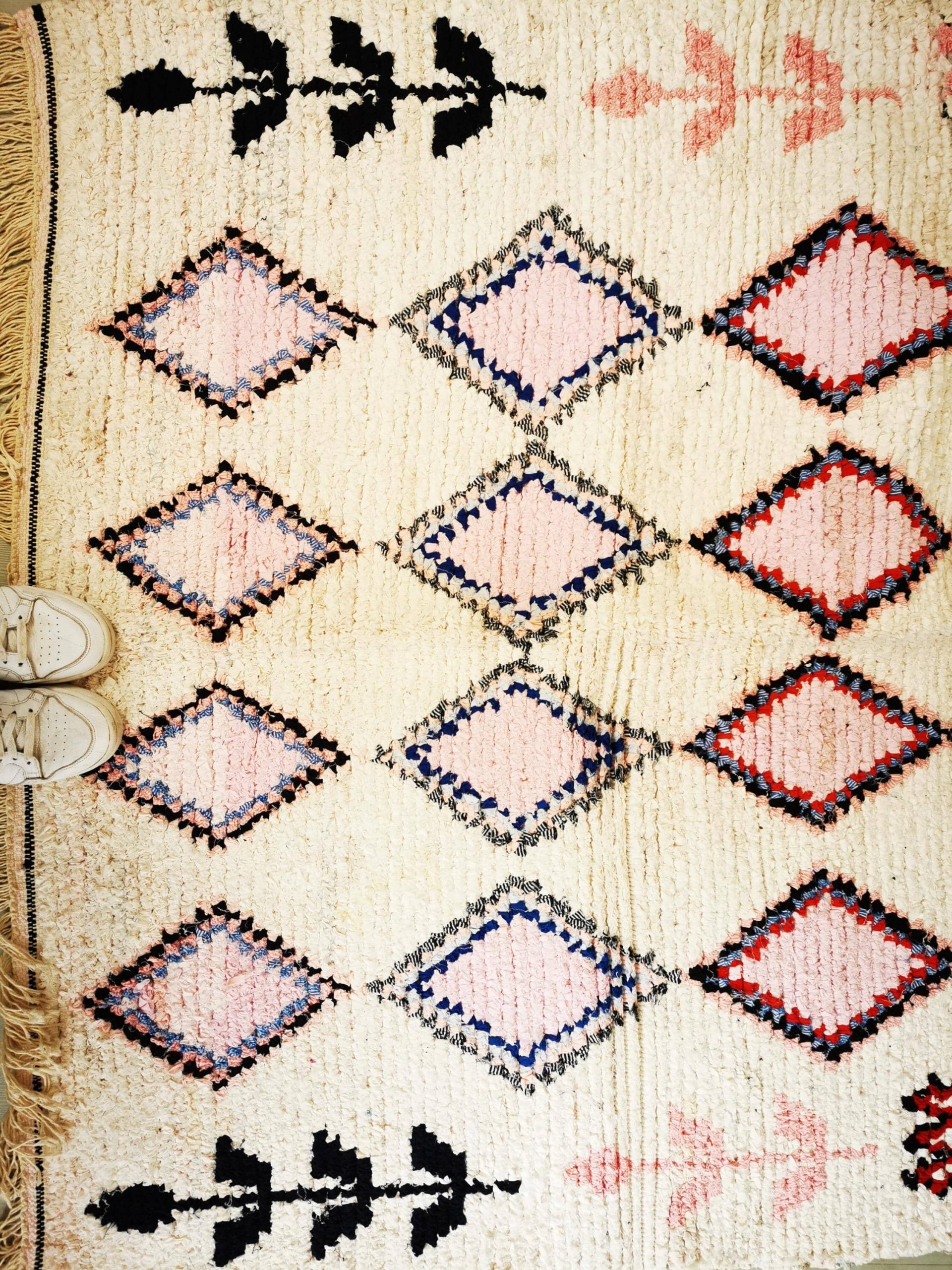 Nachhaltiger Berber Teppich „Hiba“ | Rosa Rauten & Blumen | 235×138 cm