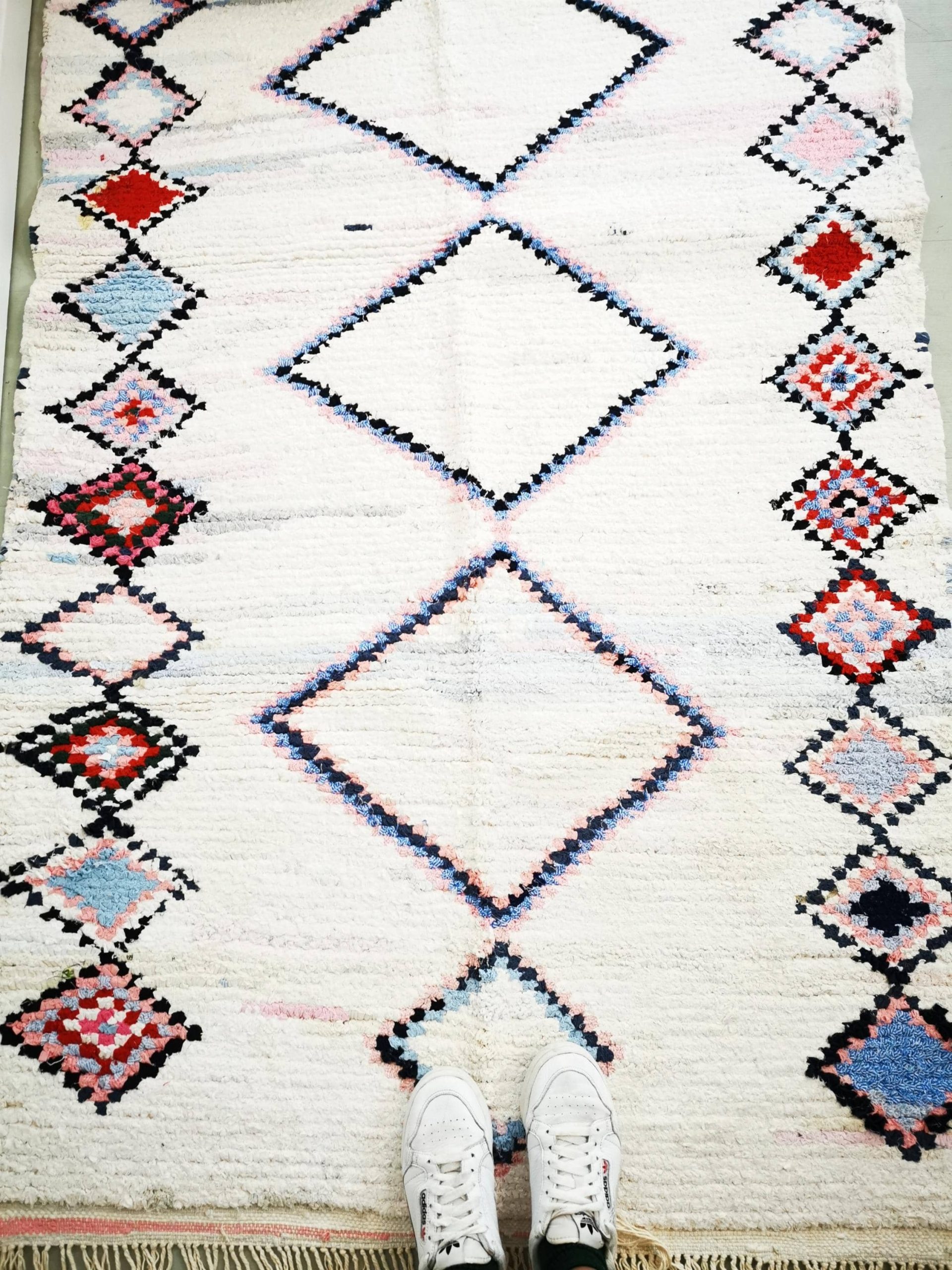 Boucherouite Berber Rosalie Teppich vegan, nachhaltig & handgewebt , Pastell , 135×200 cm“