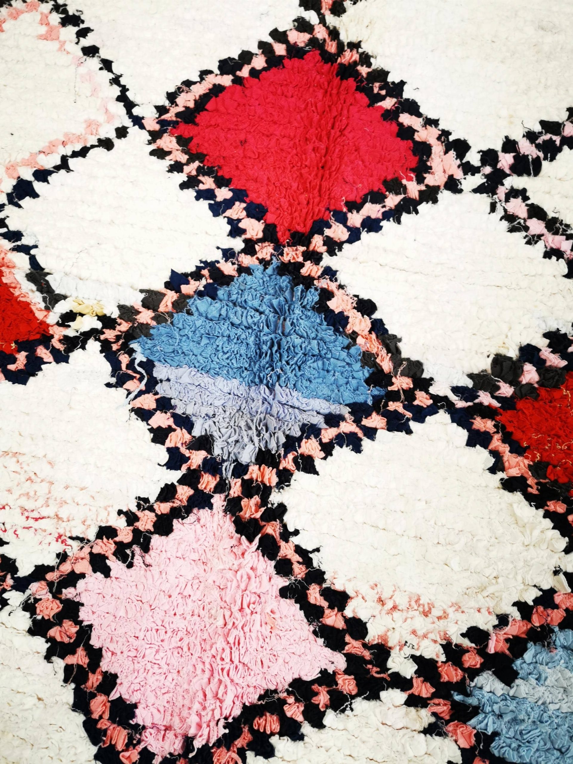 Boucherouite Berber Rosalie Teppich vegan, nachhaltig & handgewebt , Pastell , 135×200 cm“