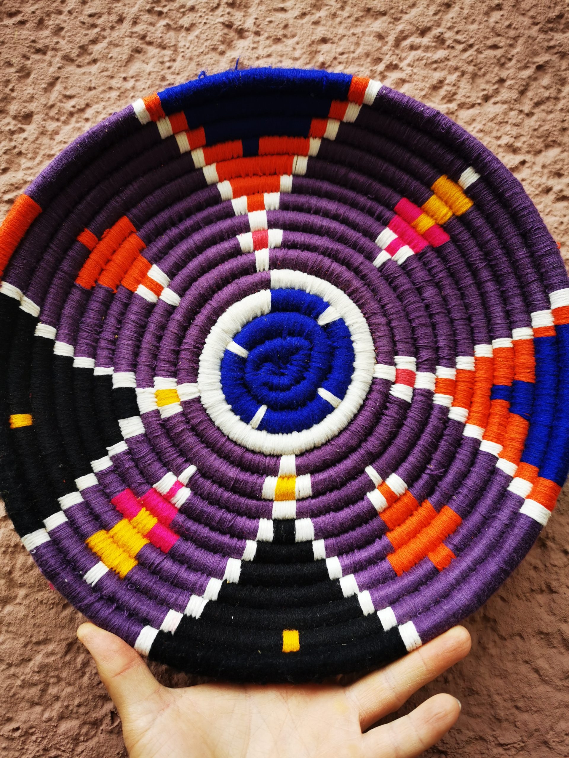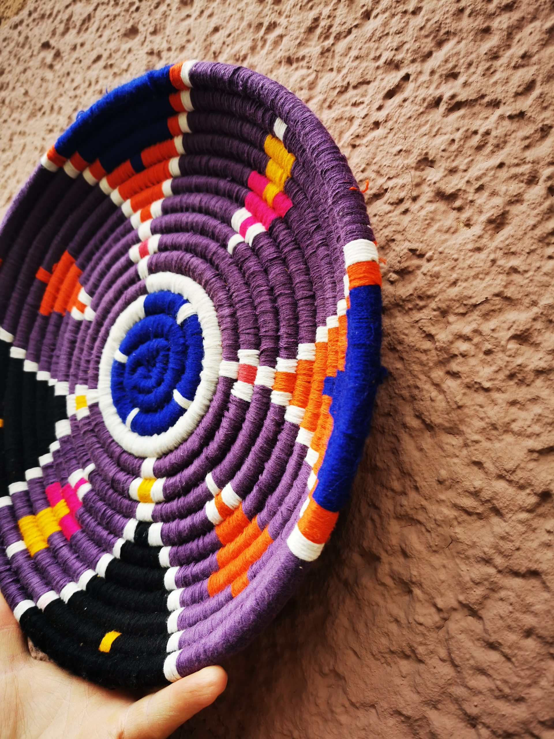 Entdecke die Magie der Berberkunst: Handgefertigte Teller aus Pflanzen und recyceltem Garn.