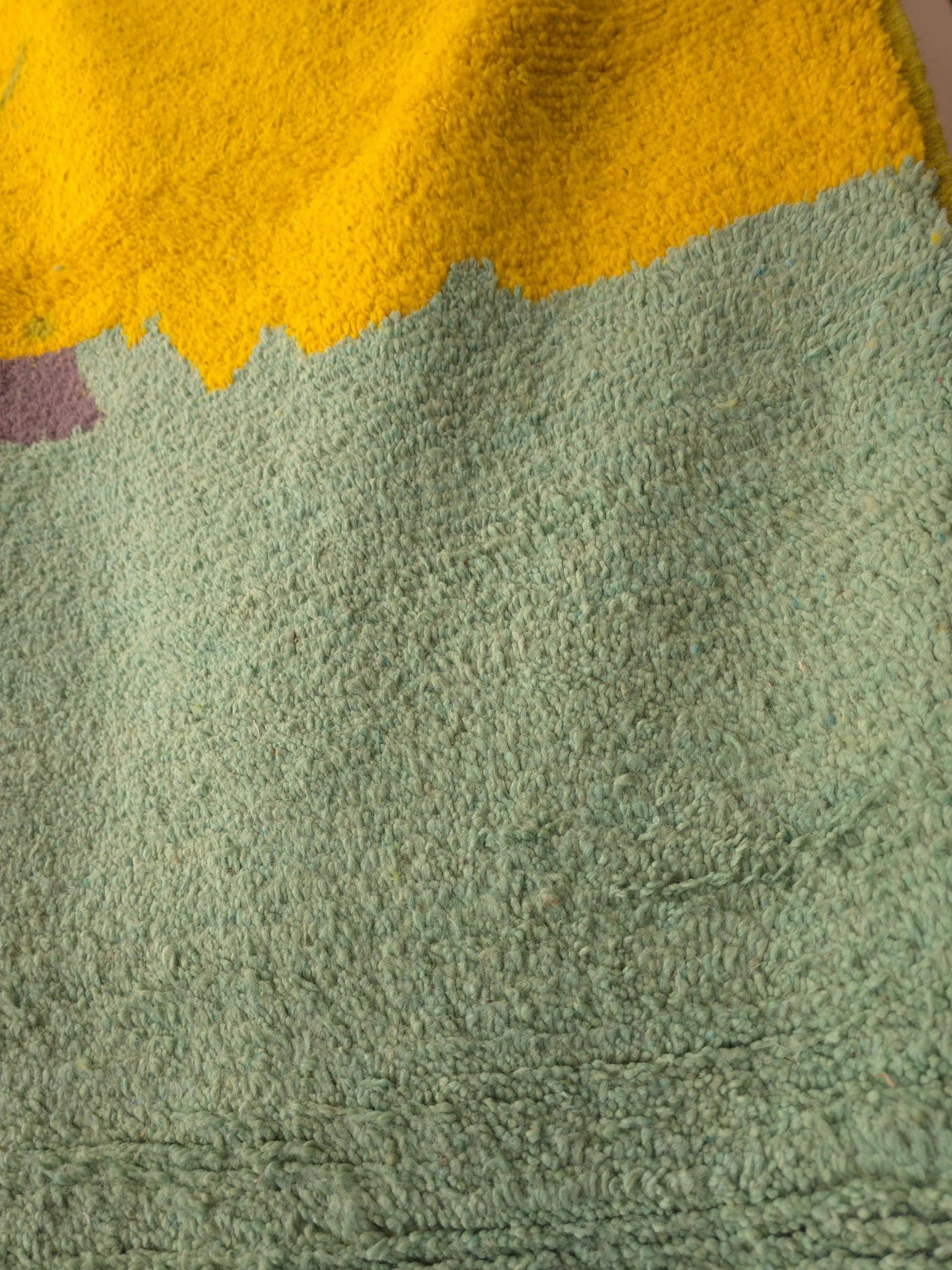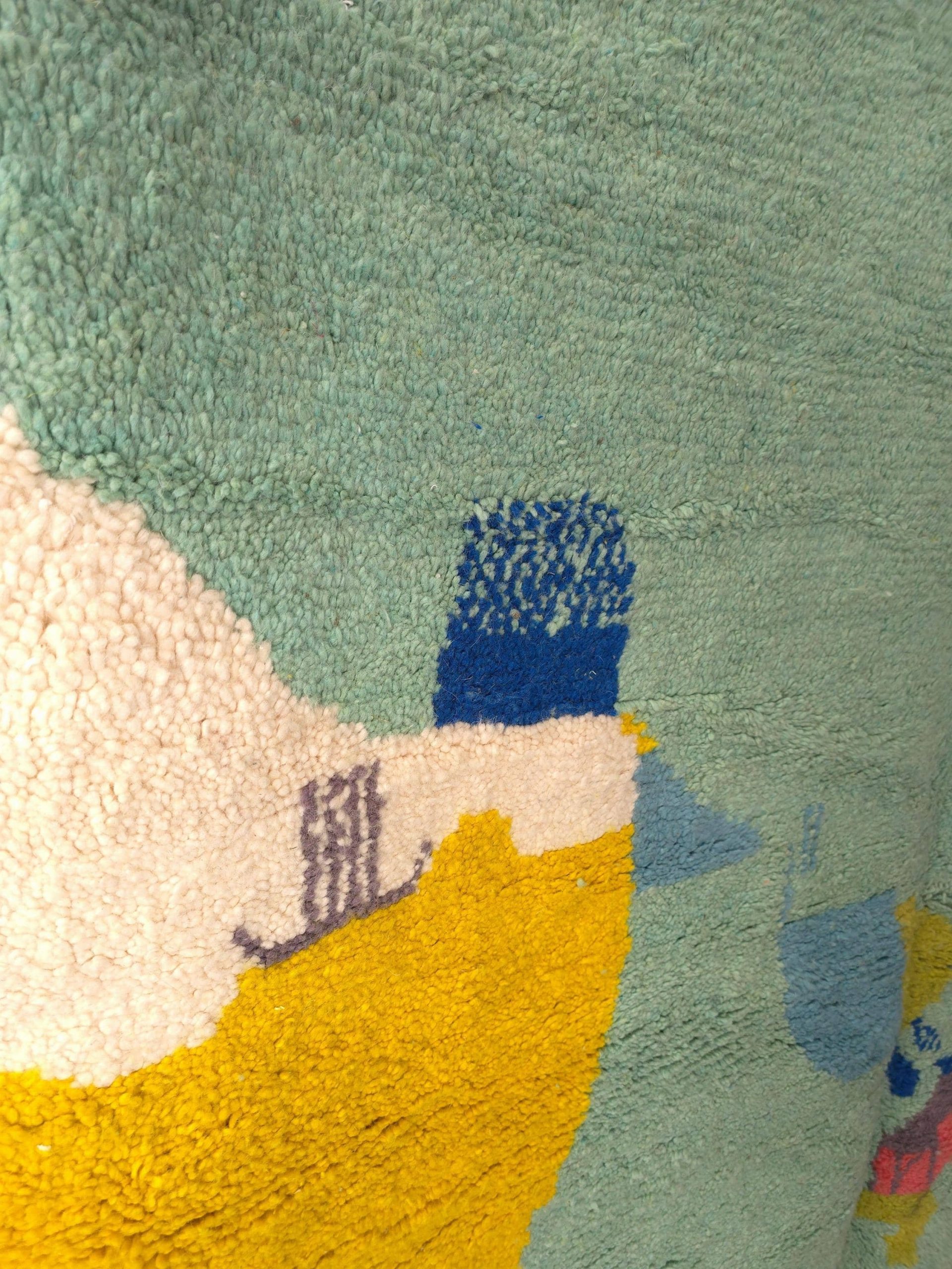 Ein Unikat! Handgewebter Berber-Teppich (250x150cm) aus Schurwolle. Buntes, abstraktes Design auf cremeweißem Grund. Von Kunsthandwerkerinnen in Marokko gefertigt. Fair & ethisch produziert.